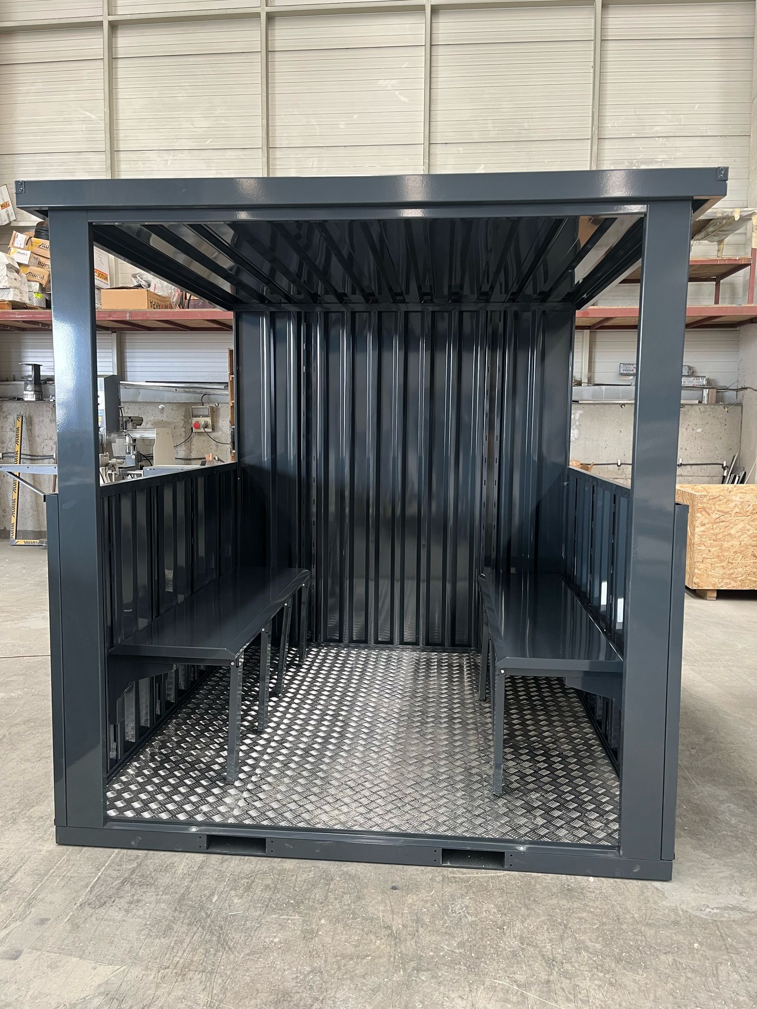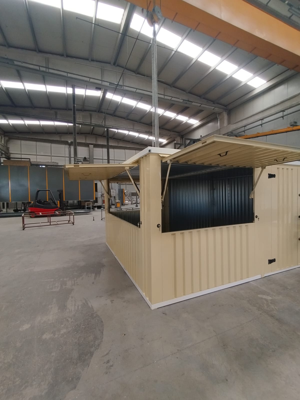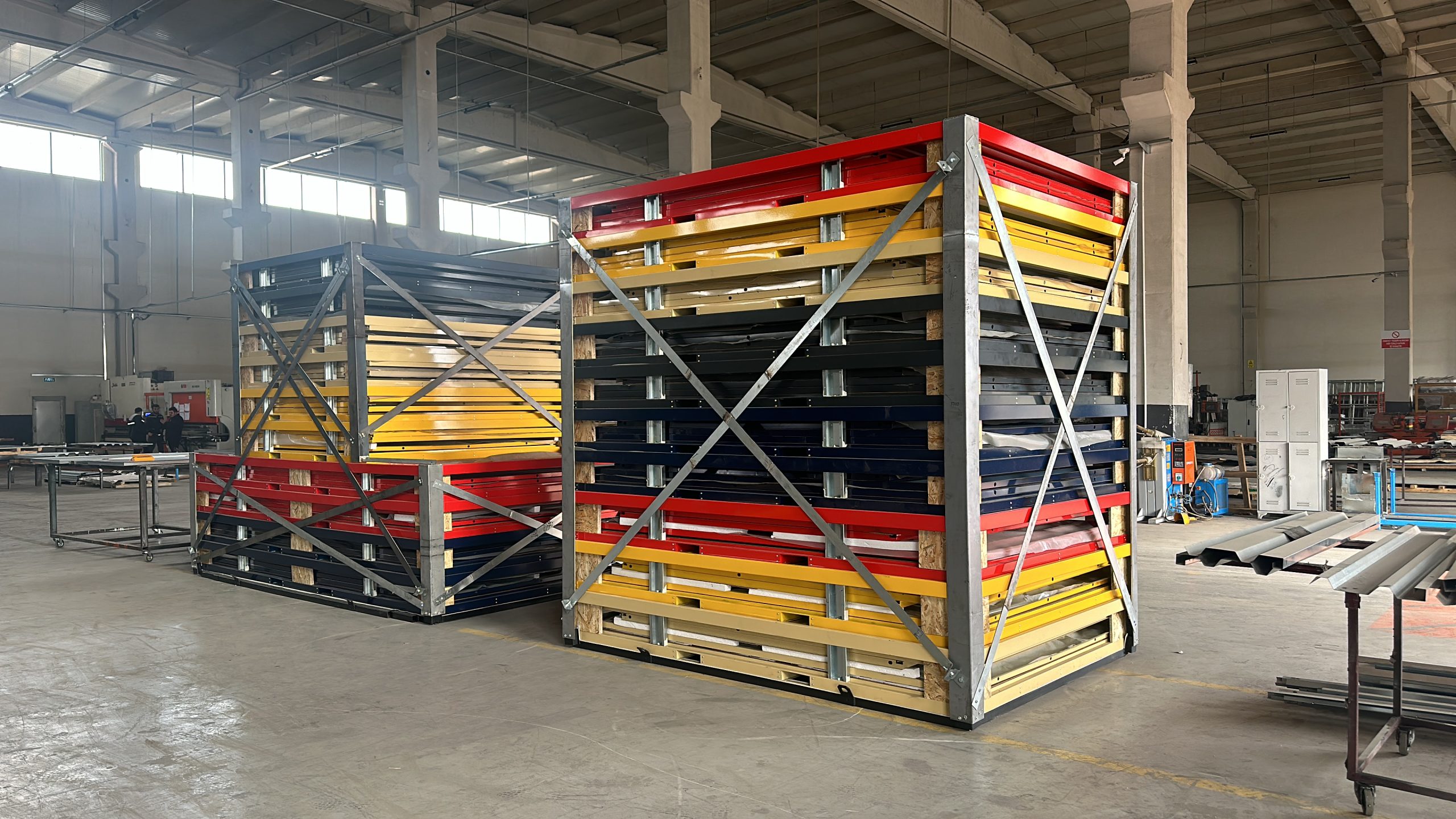 All of our products are manufactured at our high-capacity, modern production facility located in Ankara, in full compliance with international engineering standards. Operating with a light steel construction system, our production line delivers kiosks, smoking cabins, and storage containers tailored to project-specific dimensions, colors, and door configurations. With a flatpack (demountable) design approach, our containers are packaged with minimal volume — providing significant advantages in transport and logistics. The production process utilizes computer-controlled cutting, drilling, and shaping machines to ensure precision at every stage. Doors, hinges, ventilation panels, and fasteners are pre-mounted in the factory, ensuring each unit is ready for rapid on-site installation. Every product undergoes strict quality control and durability testing before shipment. Manufactured to meet European market standards, our containers are produced in large volumes throughout the year and delivered with confidence to both domestic and international projects.